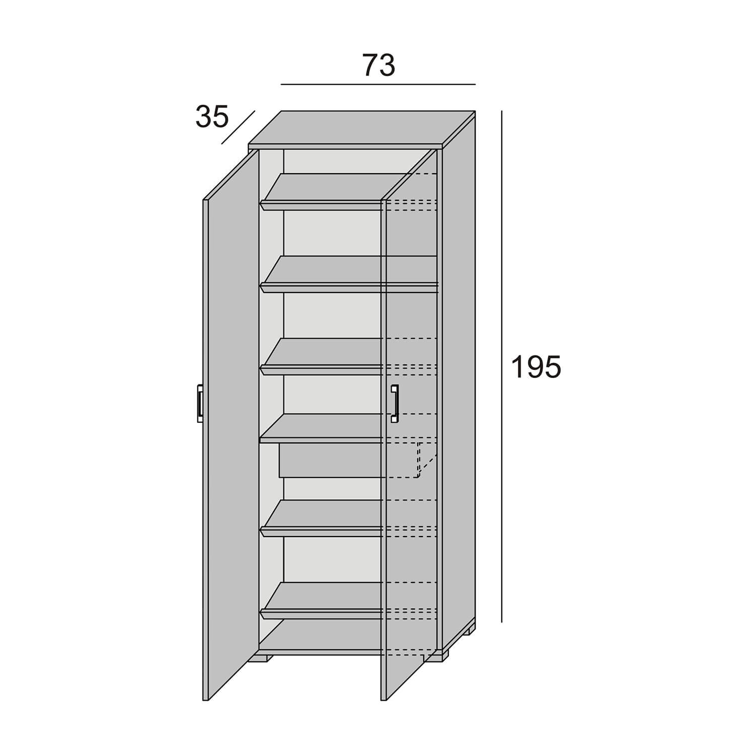 An original multi-functional wardrobe with a clean and simple structure, but of considerable visual impact. This item of furniture is perfectly suited to any room in the home, offering freedom of interpretation according to need for a shoe rack or a space-saving wardrobe. The two doors hide an internal drawer and six shelves, offering ample space for organising your objects.