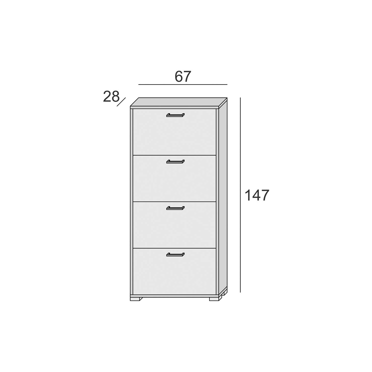 Shop RetailersThese shoe racks adapt perfectly to the style of your home. They can be fitted with three, four or five doors for ideal convenience. The safe tilting system and the double depth offer extensive storage space. This useful and elegant space-saving shoe rack allows you to organise up to eighteen pairs of shoes in an orderly manner, optimising the available space thanks to its compact size.