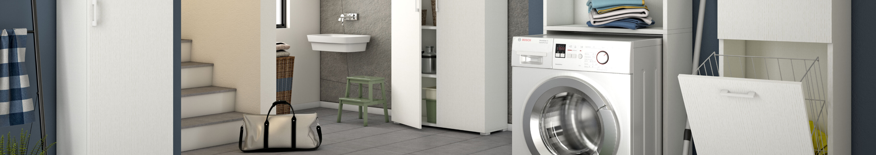 The coordinated finishes and clean aesthetics make our furniture perfect for combined bathroom-laundry rooms. Multifunctional, compact and space-saving designs can be combined to create ad hoc laundry corners, which can be showcased in your physical or online shop with attractive, ready-to-use compositions.