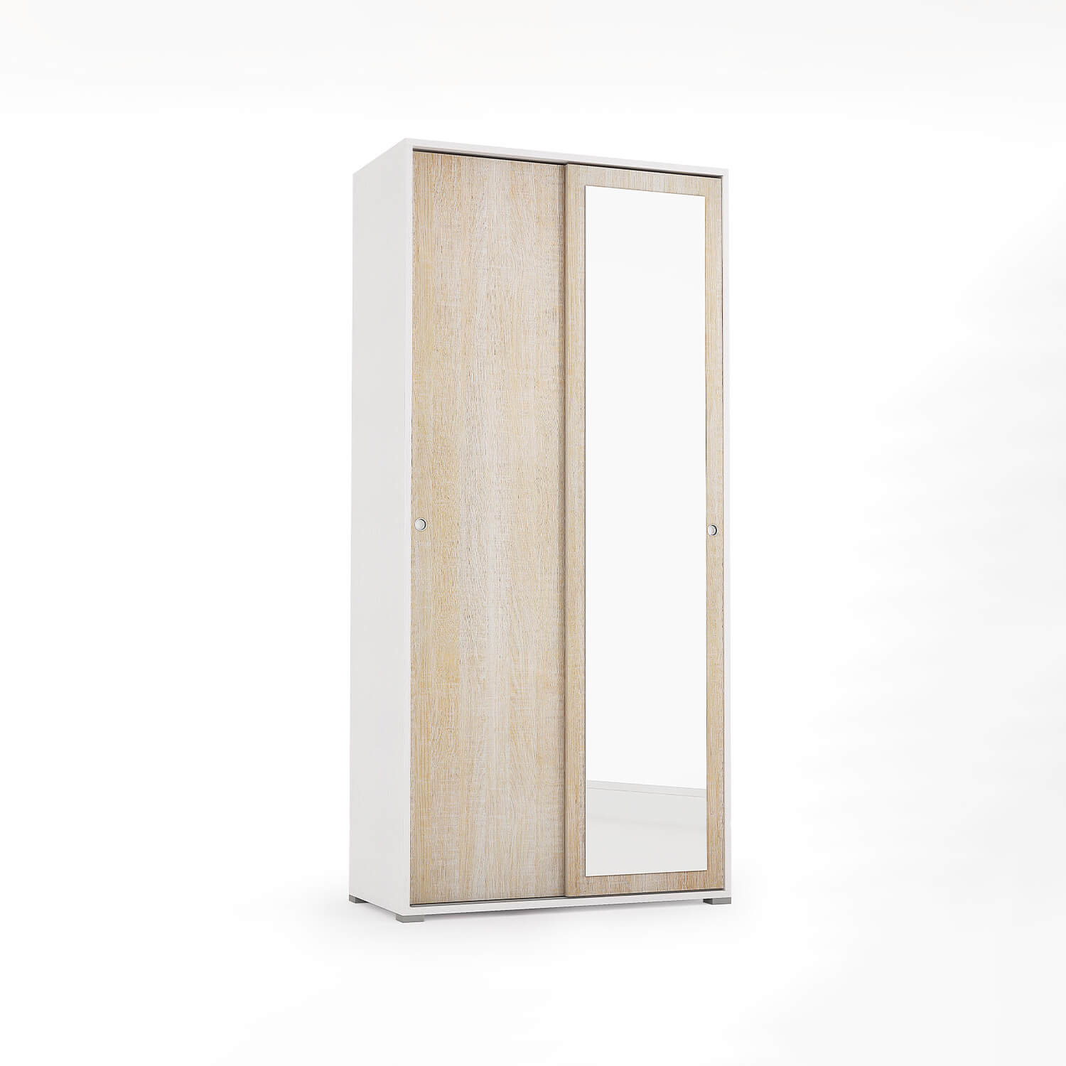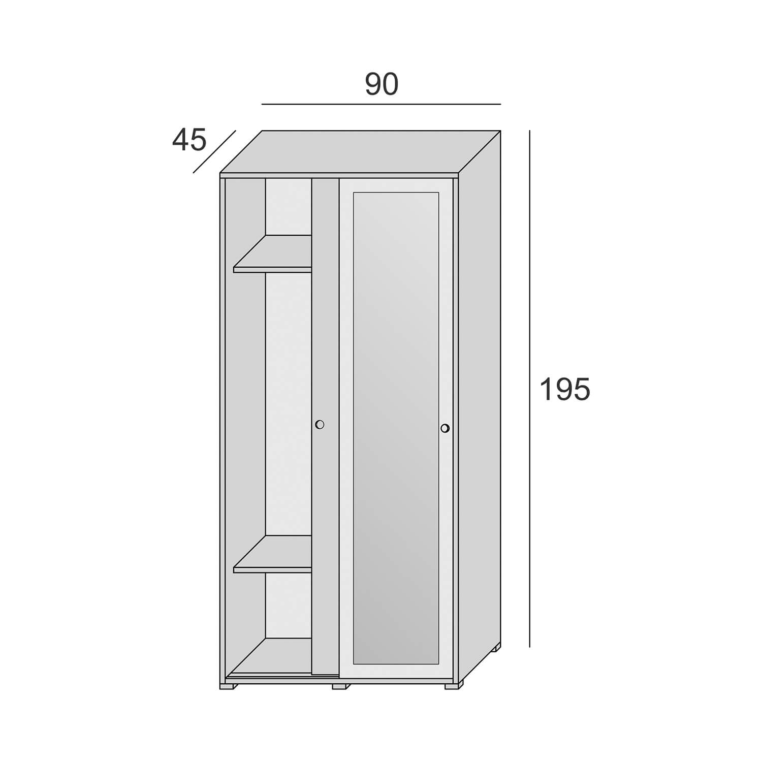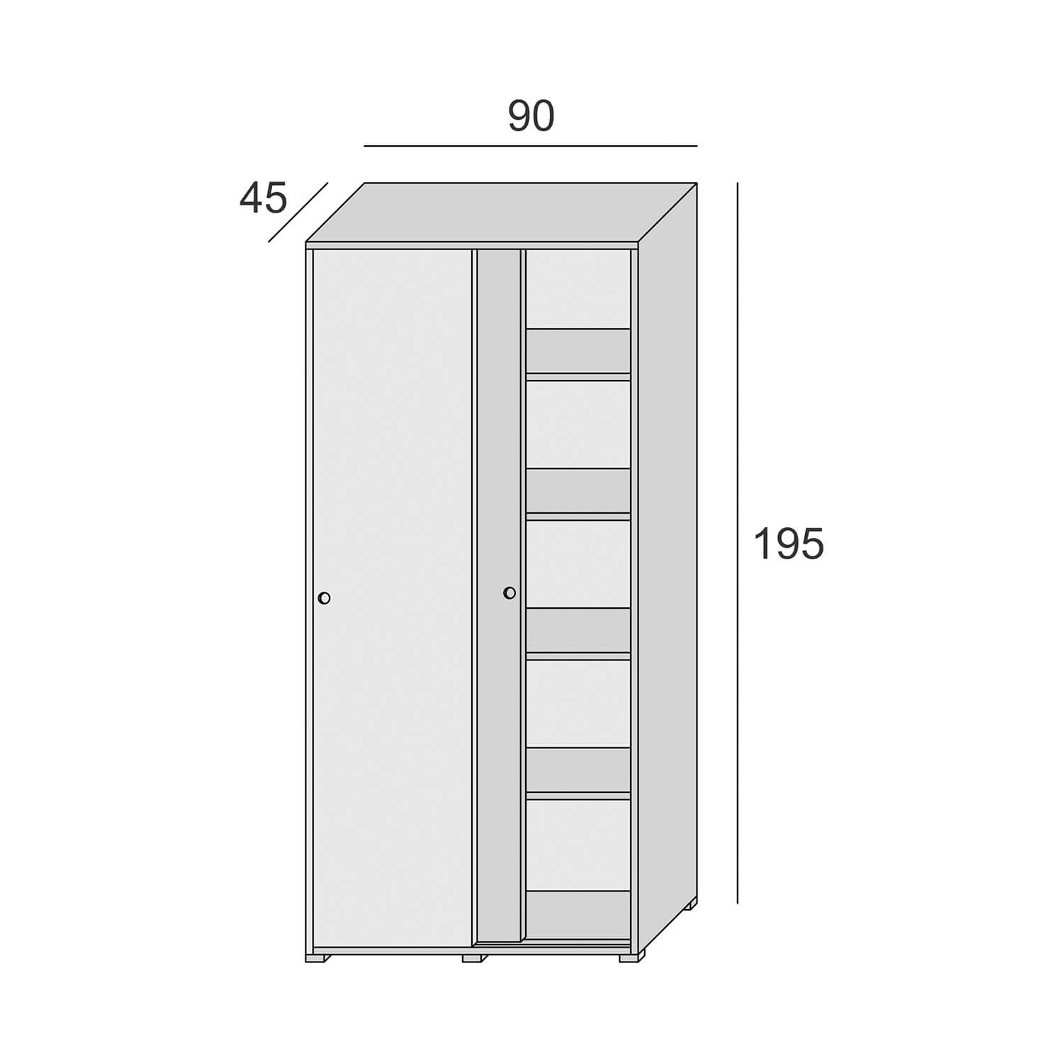 Shop RetailersHighly practical, with a modern design. This item of furniture has been designed as a convenient wardrobe for an entrance hall or small room, thanks to its sliding doors with locking system. Inside, it contains a practical hanging rail and two shelves, perfect for storing a wide range of objects. Elegant and functional.