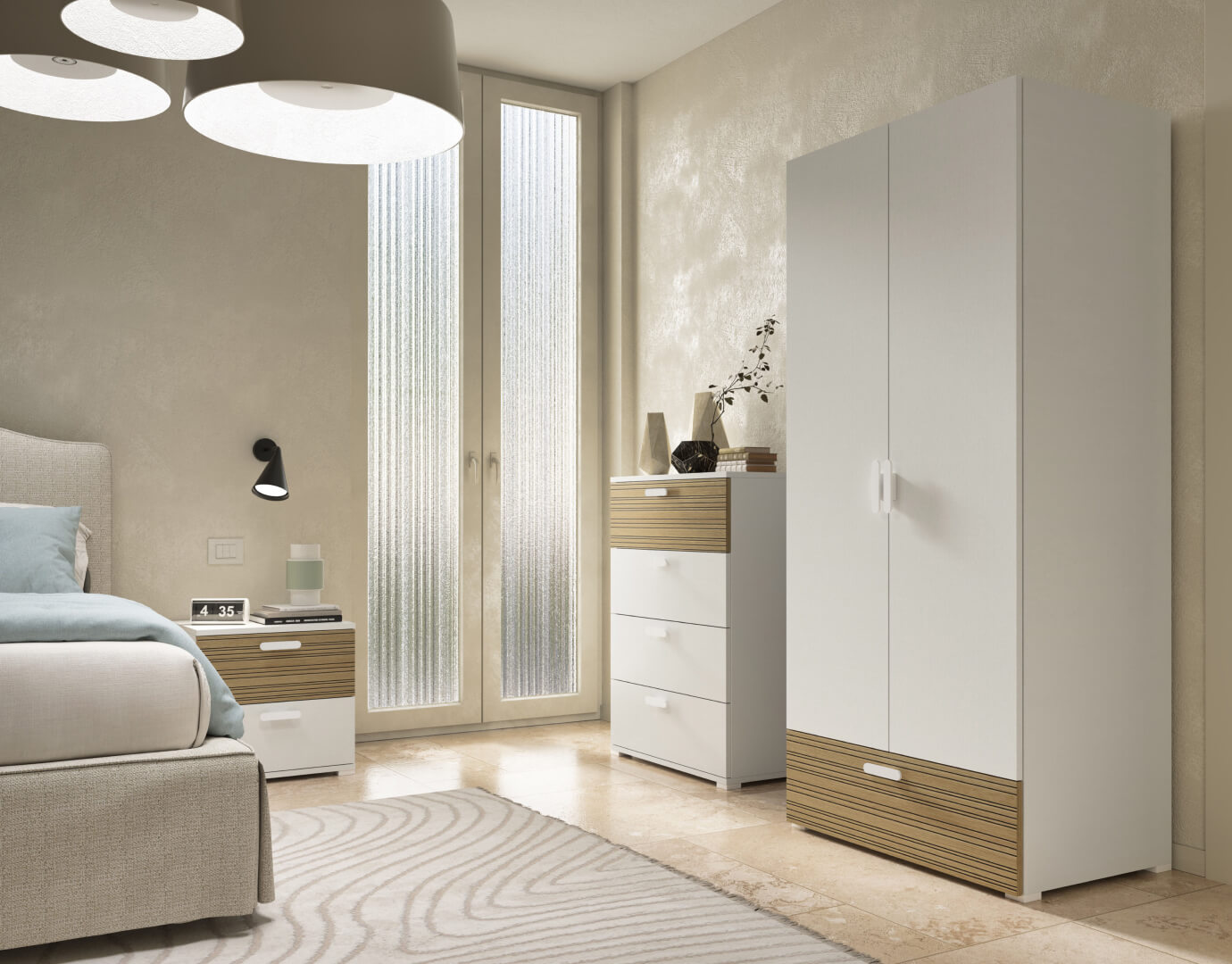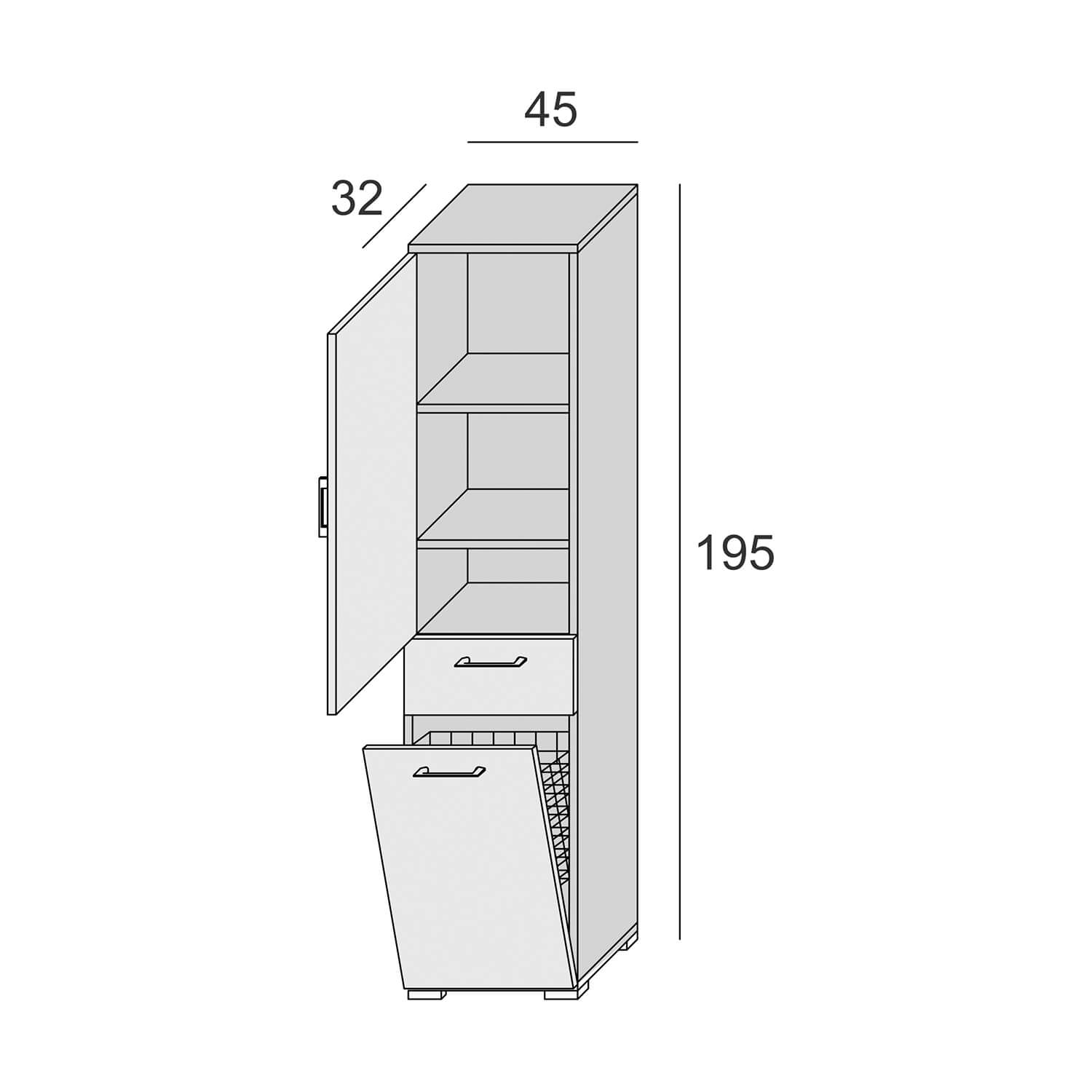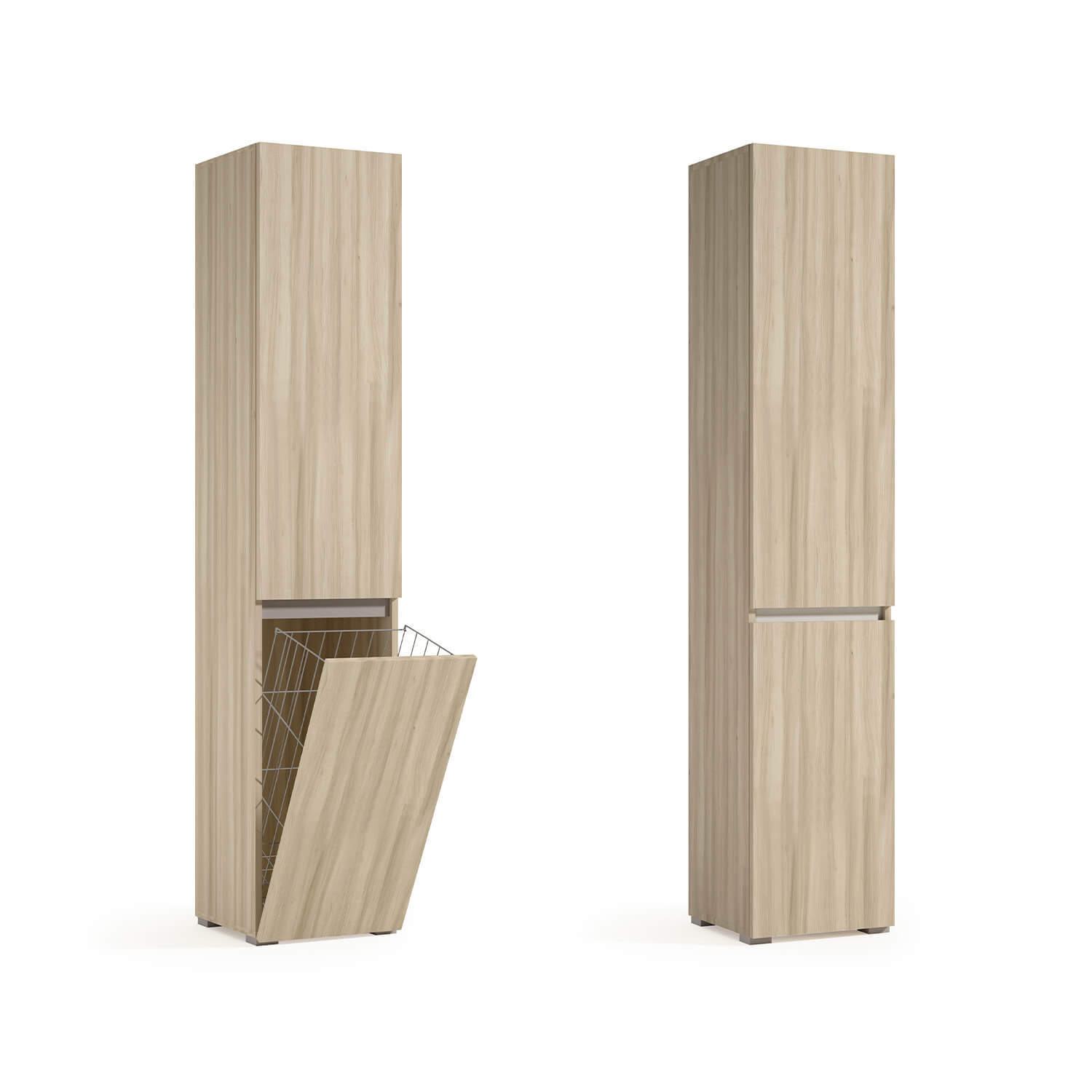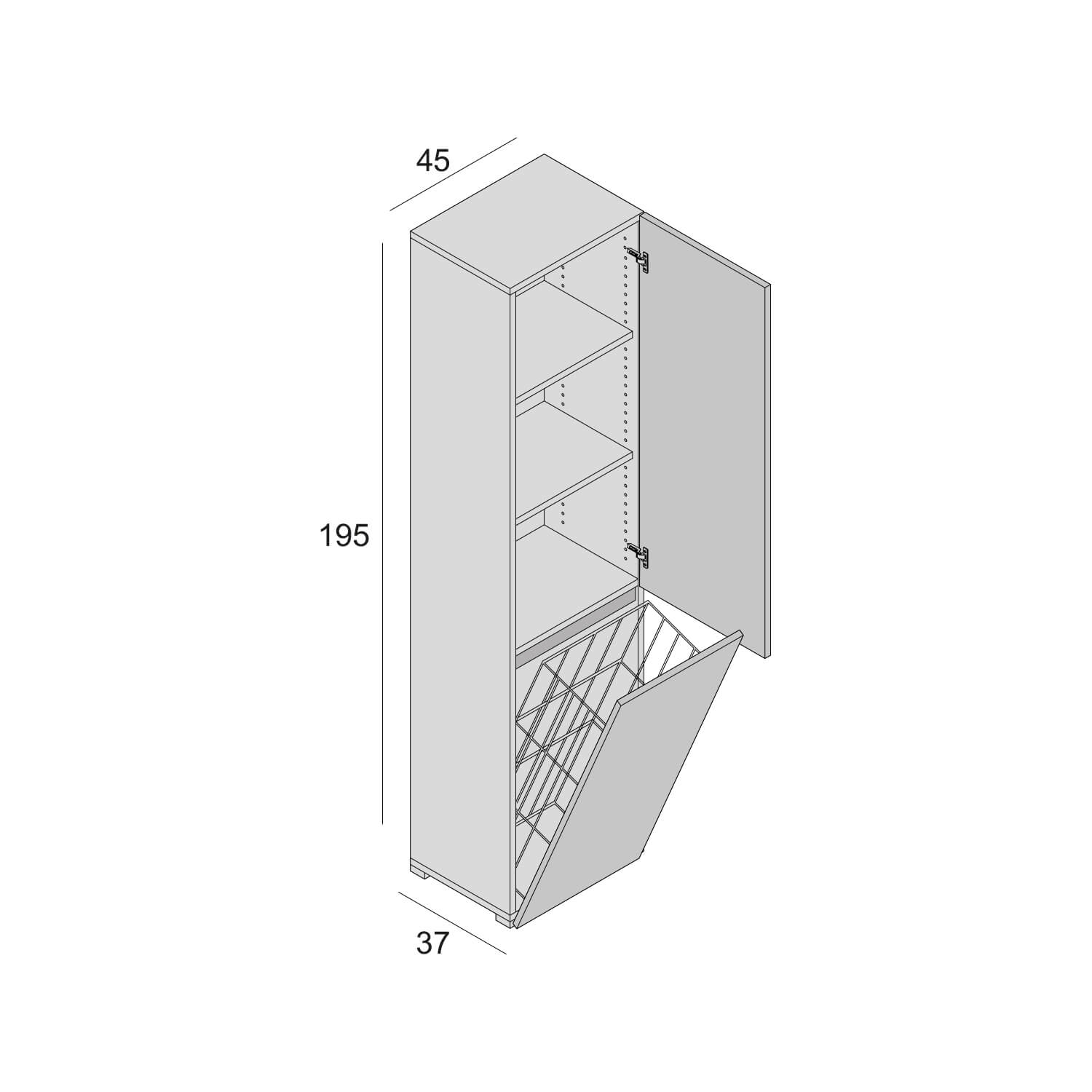 It is fitted with a convenient metal laundry basket that allows areas to always be kept tidy. Furthermore, the drawer with telescopic metal runners allows everything to be kept close to hand whenever necessary. The wardrobe door has an adjustable shelf on the inside that offers an additional space for storing a wide range of items.