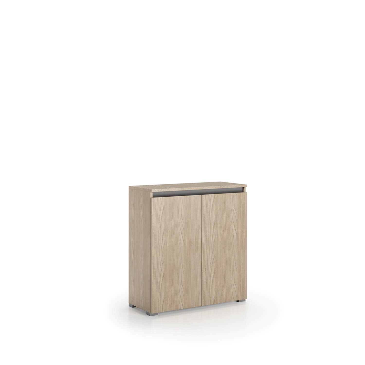 The low version of the wardrobe is composed of three height-adjustable shelves, guaranteeing the maximum capacity in a compact space. Furthermore, the upper surface can be used to display objects in an entrance hall and can easily be combined with other elements from the same series.